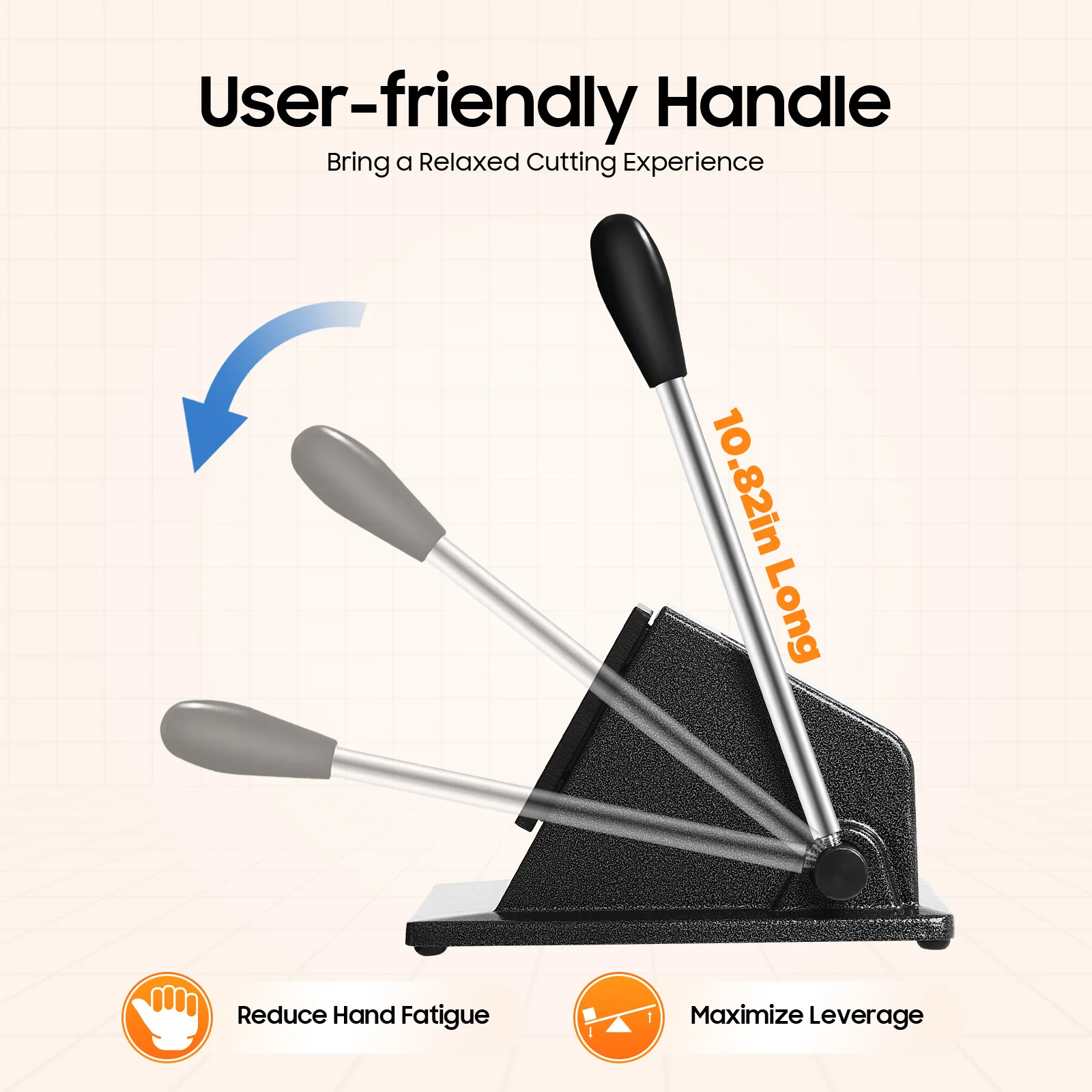 Easy & Stable Operation: The simple structure makes it easy to use. You only need to place the paper into the slot and gently lower the handle to achieve a good paper-cutting effect. In addition, the large base (8.34*7.08in) ensures the stable placement of the cutter and can avoid accidental movement while cutting.