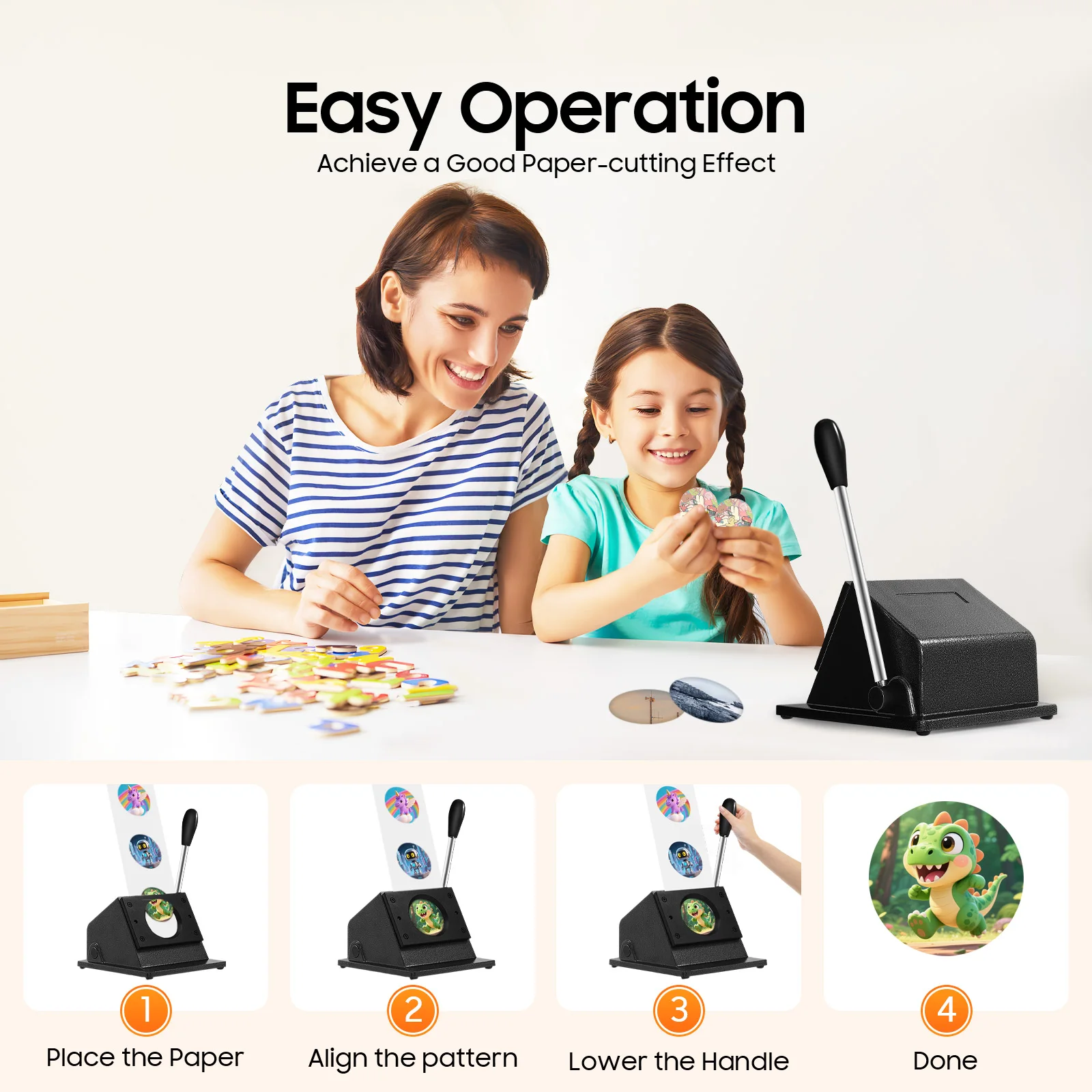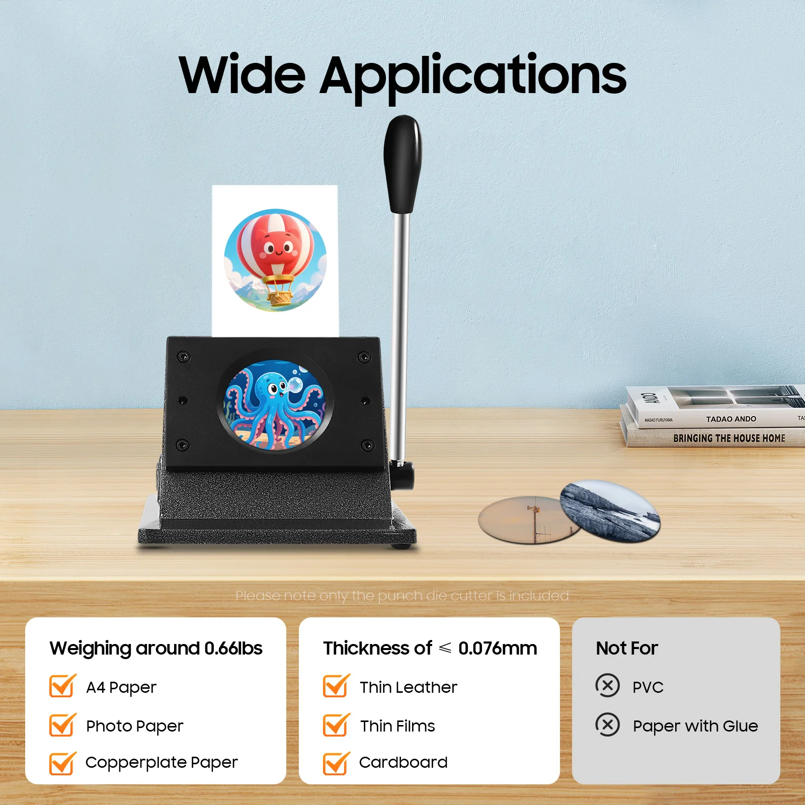 ✨This professional punch die cutter creates flawless 58mm badges and circular signs from paper (≤0.3kg), thin films, cardboard, and leather (≤0.076mm). Place materials in the slot and press the 27.5cm labor-saving handle. Features quenched steel blades for burr-free cuts, non-slip base (21.2x18cm), and durable stainless steel construction. Ideal for medals, crafts, and custom accessories.
