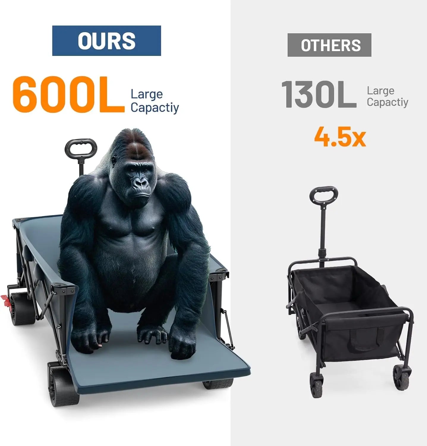 600L Beast Wagon 26" W Extra Wide All Terrain Folding w/Big Wheels, Cargo Net & Tailgate, 26" W and 55" L, Capacity and 400lbs H