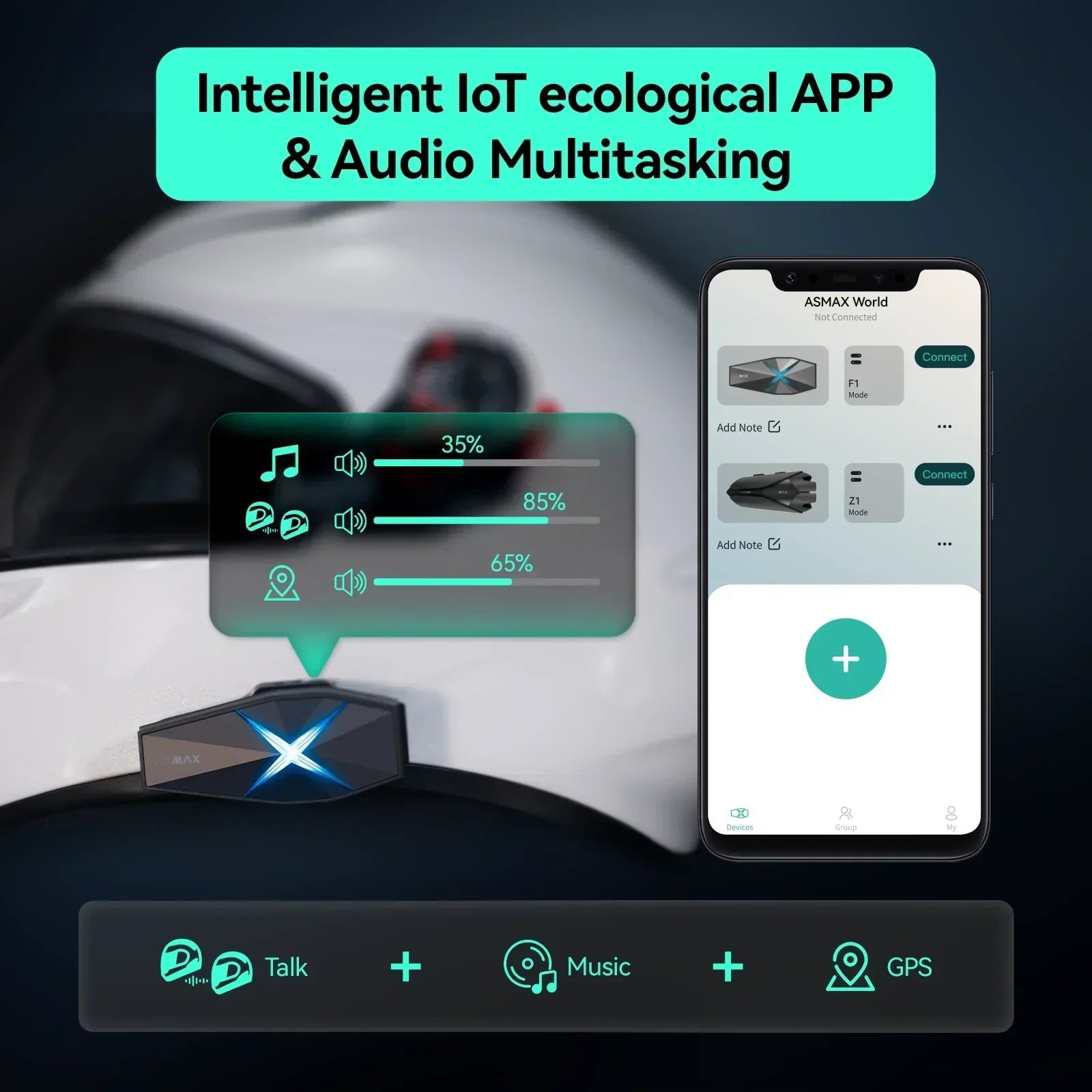 ASMAX F1 Mesh Motorcycle Intercom AI Voice HD 45mm Speakers 1350mAh Battery Pro-Level Helmet Communication System Global version