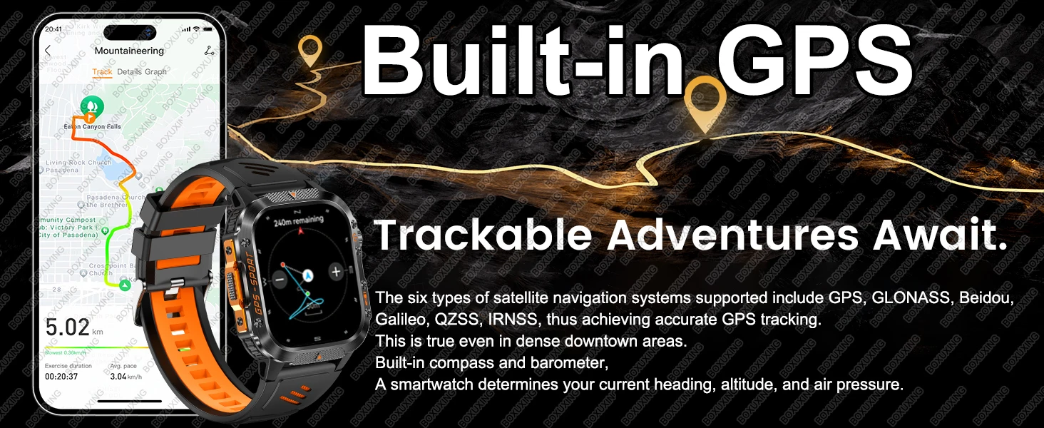 Watch features 6: GPS positioning: The six types of satellite navigation systems supported include GPS, GLONASS, Beidou, Galileo, QZSS, and IRNSS to achieve accurate GPS tracking. It can also receive satellite signals to maintain signal strength and consistency, enabling accurate GPS tracking. This is true even in dense downtown areas.