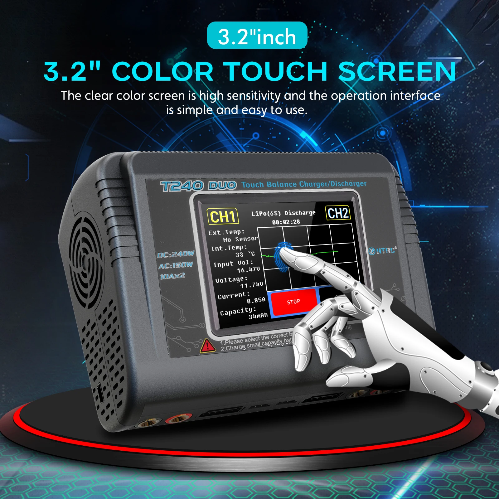 HTRC T240 High Power Battery Charger AC150W DC 240W 10A Dual Channel Touch Screen Lipo Balance Chargers Discharger for RC Models