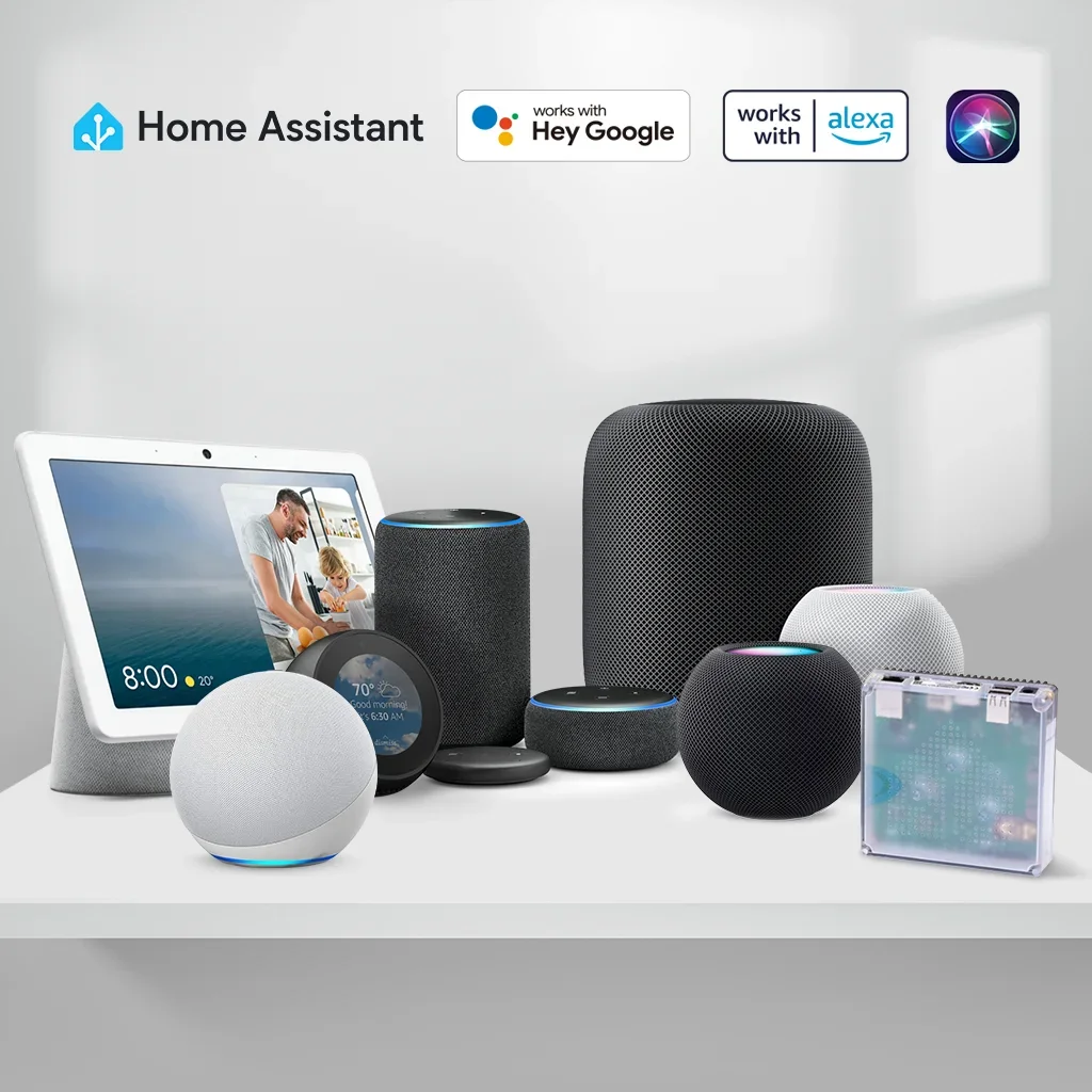 HOME ASSISTANT, ALEXA, GOOGLE HOME - eMotion Ultra operates entirely locally for instant integration with Home Assistant and other MQTT-supported platforms, making all entities (zones, brightness, temperature, humidity, etc.) available. With an internet connection, it also supports Alexa, Google Home, and Siri for third-party control and automations.