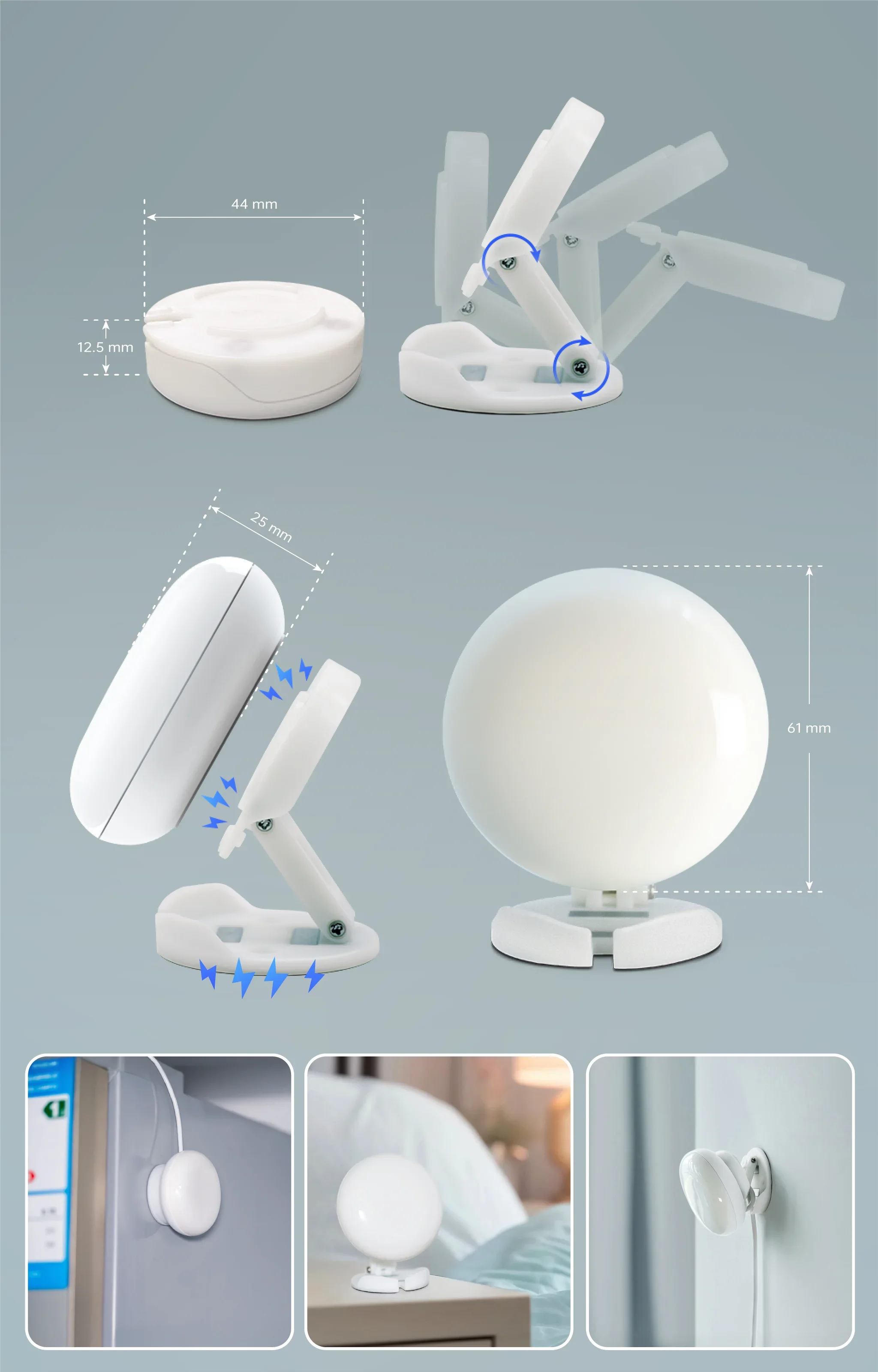 DOUBLE-SIDED MAGNETIC INSTALLATION - Improved foldable and adjustable stand features double-sided magnets for flexible installation options: Desktop placing, Wall mounting or Magnetic attaching. IMPORTANT NOTICE: Requires a certified 5V/2A power adapter. Refer to "Installation Guide" in app for setup instructions. Max detection range: 6m / 20ft (moving) and 4m / 13ft (stationary)