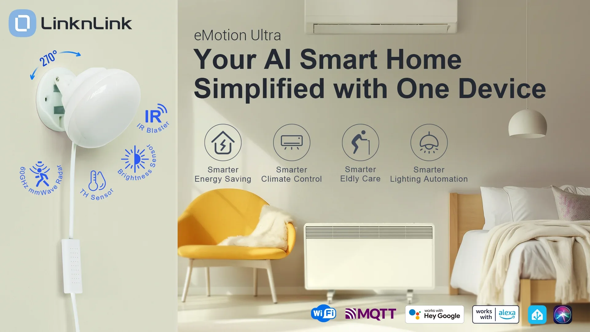 LinknLink eMotion Ultra 60GHz mmWave Radar Sensor - WiFi Smart Presence Detector with IR, Temp/Humidity, MQTT & Alexa Control