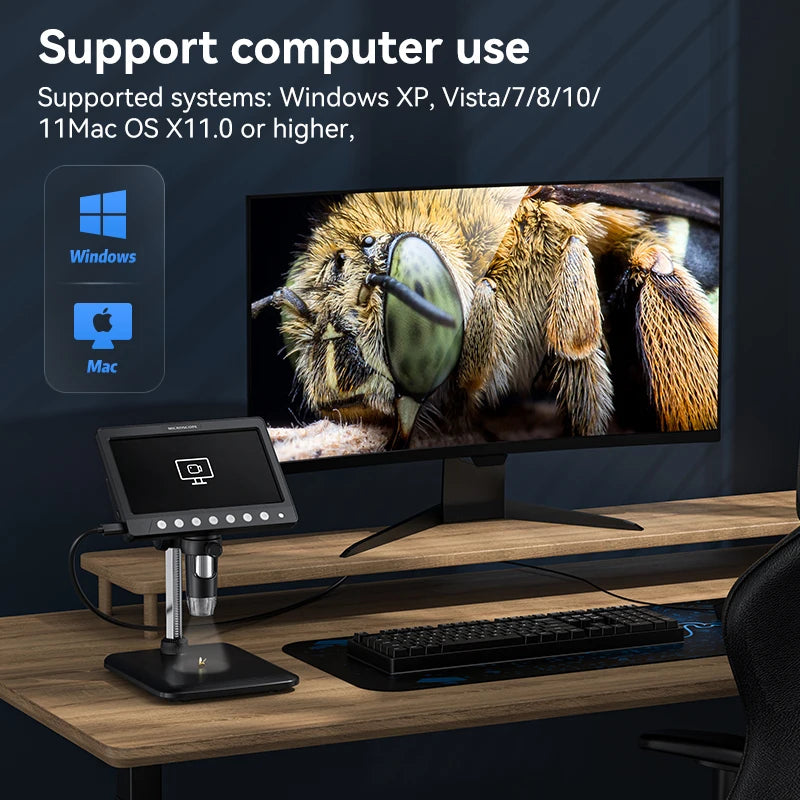4. Support Real-time Viewing On PC: This 7-inch (about 17.8 cm) LCD digital microscope also supports real-time viewing. When connected to a computer via a USB cable, the object can be viewed on the computer monitor .