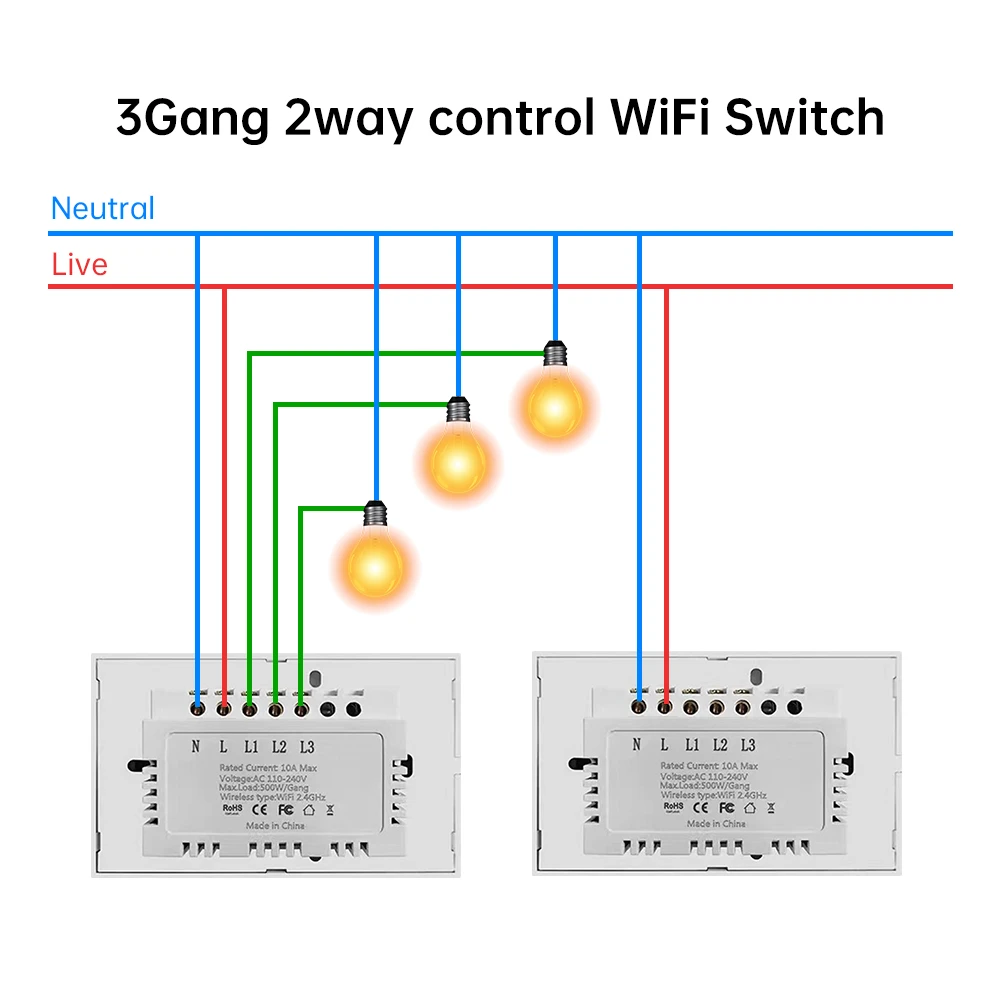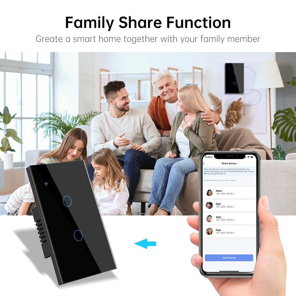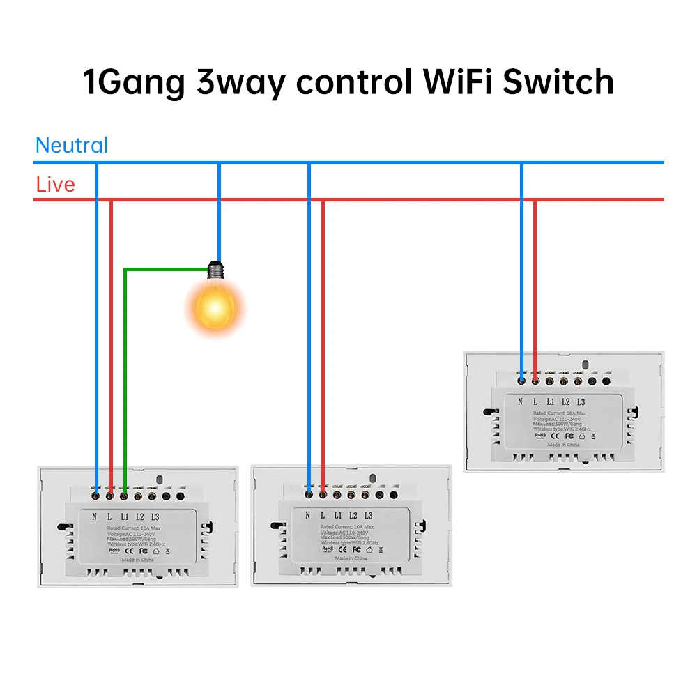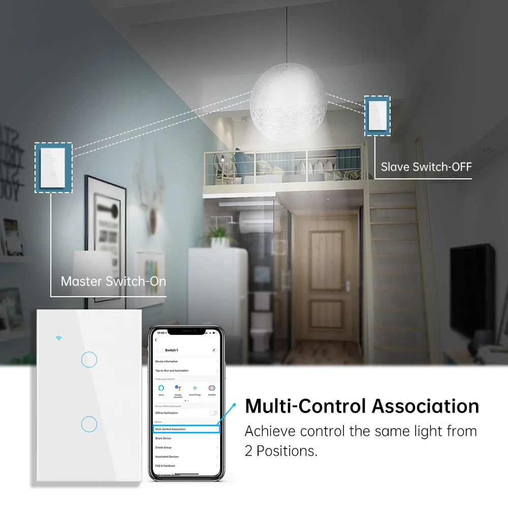 Multi-Control Association: wifi switches have 1/2/3/4way and can control one light from four Different places(the maximum is 4 way).